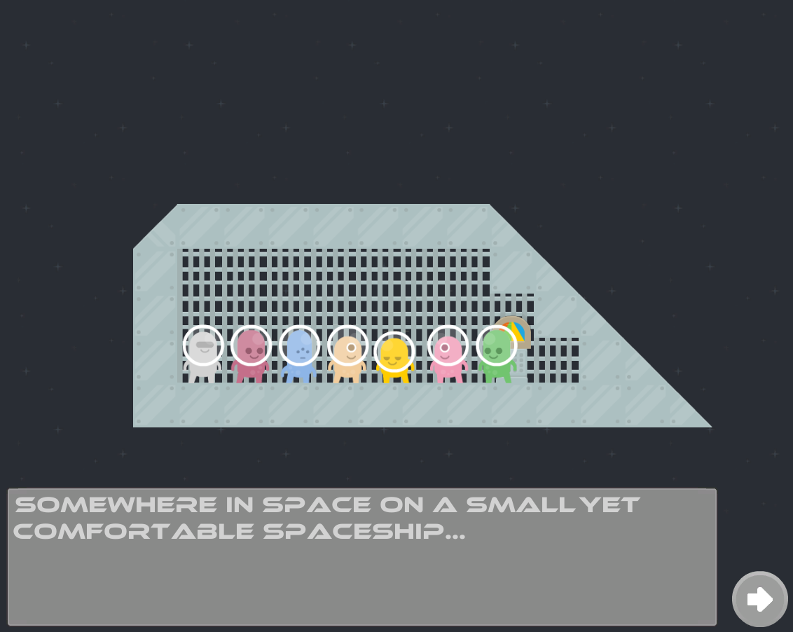 Creating an introduction cutscene wasn't too bad. Creating a simple-ish spaceship, adding the characters, moving background, then text, dialogue, events happening and everything coming together for the actual start of the game. You can probably figure out how it goes!