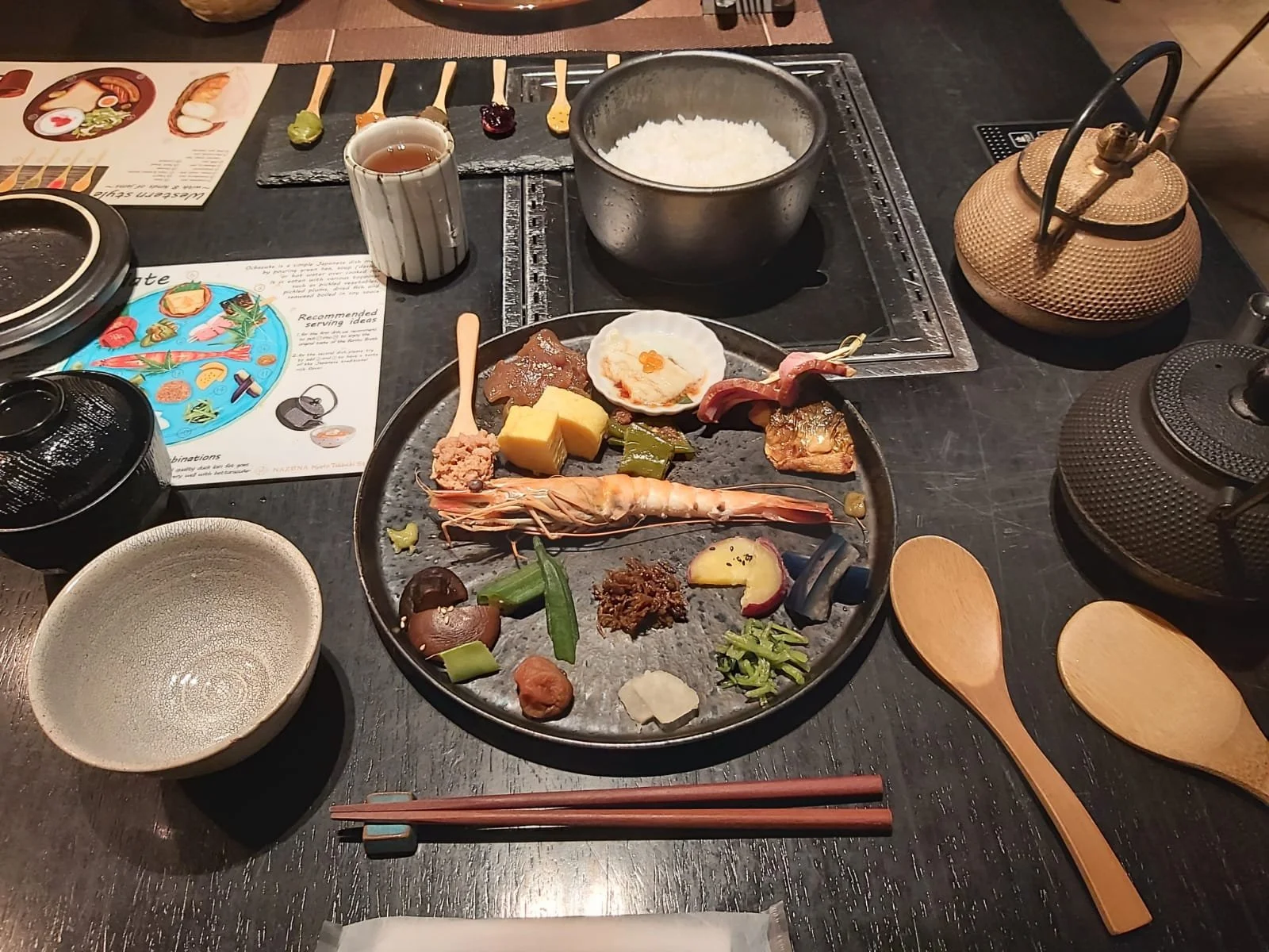 The breakfast at the hotel was really fun, I had a plate filled with japanese ingredients and my partner had a more european style breakfast with 8 different jams.
