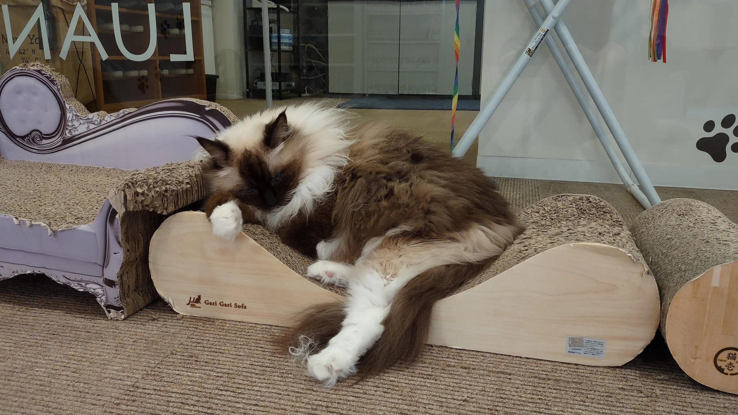 Then we went to a cat café, it was cute, a cat climbed on my back, he was too motivated.