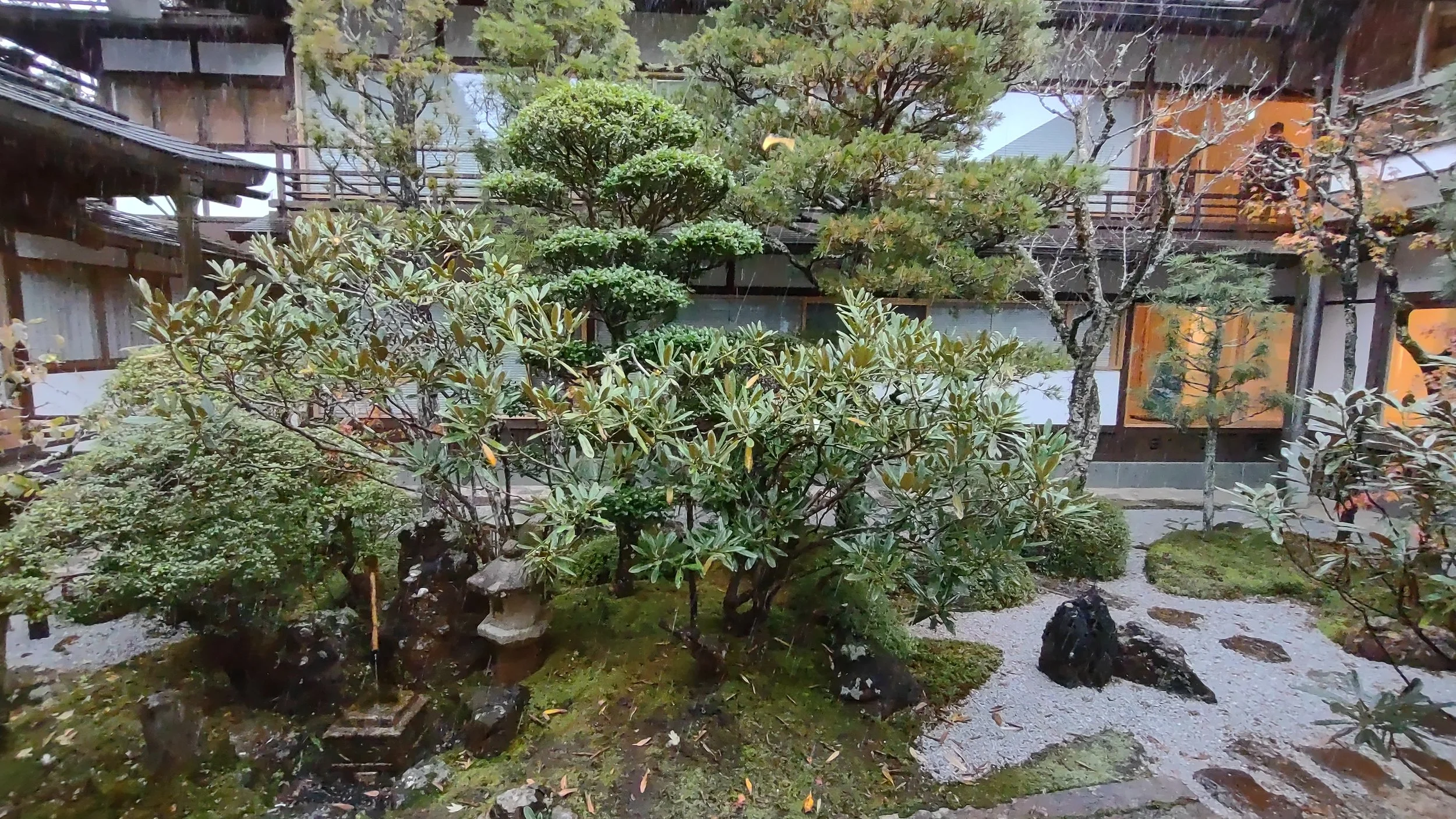 In Kyoto we immediately went to our hotel, a ryokan (traditional inn) and our room had a private exterior bath. The fridge was also full of free drinks!