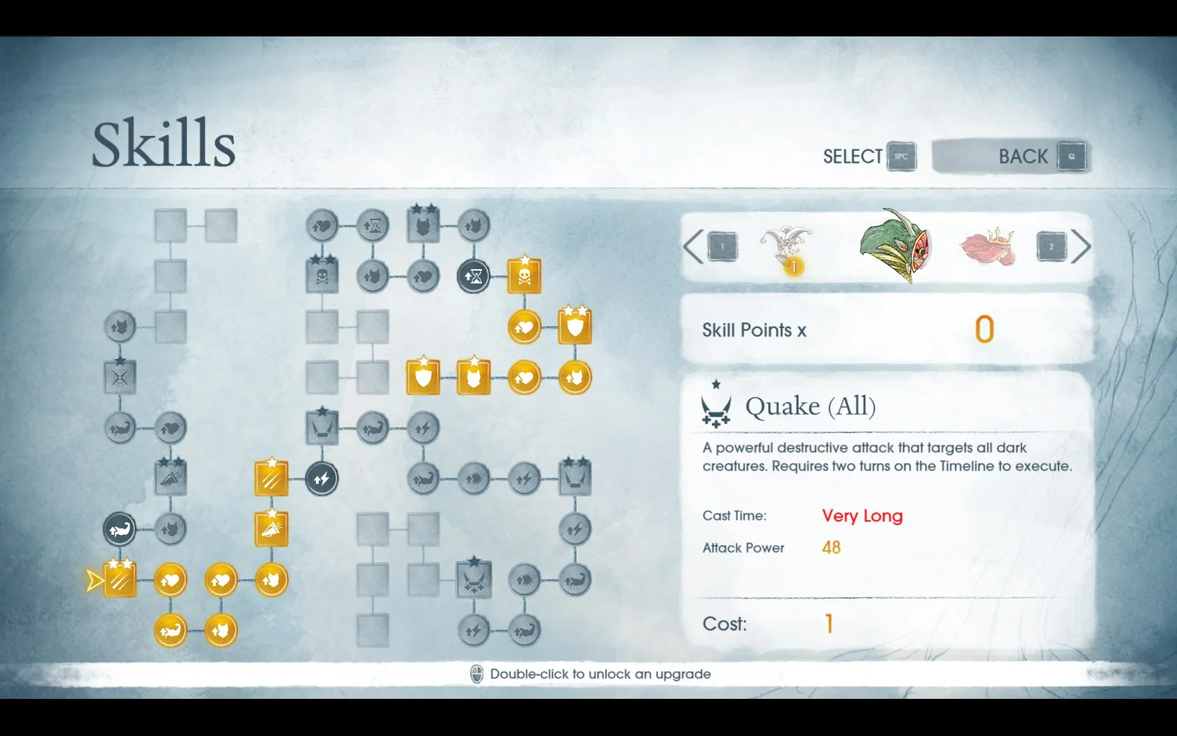 Your party is composed of many characters, all with their archetypes. Some will have faster attacks and healing, others many different elemental spells. Some can taunt and are obviously supposed to be 'tanks'. Your main character can fight with sword and magic, but she doesn't have much otherwise. It's really frustrating that you can only have one other party member. Even if you can switch pretty much at-will, choosing only one other from your roster of characters makes it so the strategic values of some skills are debatable; Taunting for instance, or buffs that affect 'the whole party'. Is it worth using such skills when the single target versions won't take much more time? Also since you need to move your Oculi around depending on which characters you plan to use, it's best just to keep your best ones on Aurora and on one or two other characters.