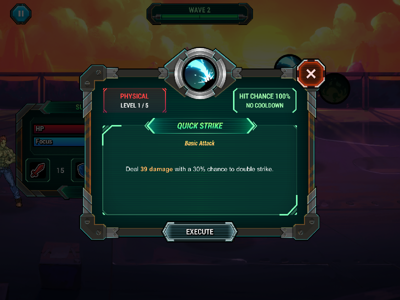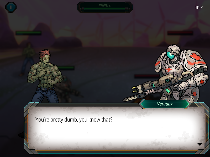 After a light intro done in the comic book style used in a few games, you're thrown in a few tutorial battles. Your character, Sonny, can equip a combination of eight active or passive skills to fight hordes of monsters that each have their own moves. Some moves have cooldowns, some are basic attacks and most of them have special effects. Either they can attack for more damage if you have a specific buff on yourself, they inflict a debuff on the enemy, while passives range from healing you when you deal damage, protecting you against attack, increasing your stats, and so forth. You can upgrade them through five levels but I feel that the upgrades give so little that I never wanted to do so. I wish they had given more serious boosts.