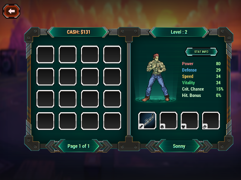 I'm not super in love with the itemization, however. You get items after certain fights and you can buy them at the store, but the stats are a bit messy for my tastes. Gear improves three of your stats while lowering two, and your eyes glaze over about if it's better or not than what you already had. Is a five point loss in power balanced by 15% more crit chance? Should I go with ten defense or ten vitality? I think they should've went with a simpler stats and clearer choices of which new gear to buy or equip. There's also an upgrade system for items, but it's random stat bonuses, adding to the number soup.