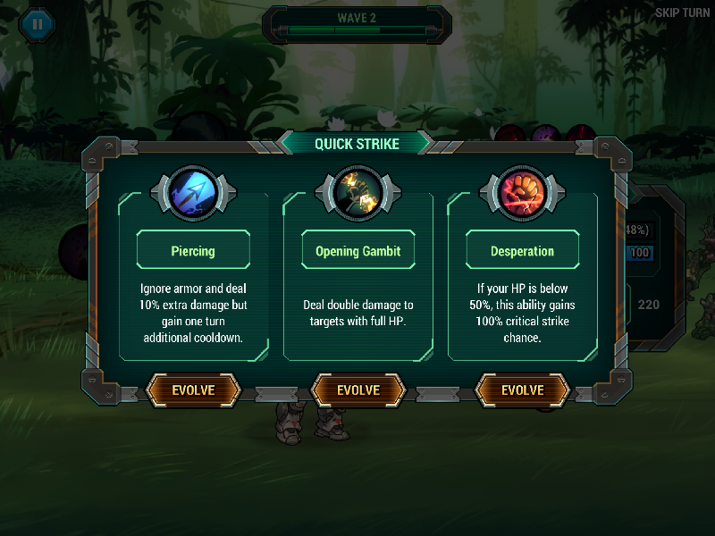 More mechanics unlock when you get through chapter 2. Your skills can 'evolve' after a certain number of turns in battle. They gain randomly assigned temporary buffs that end after the combat is over. They help, and they change each time so you can always try new combinations. You also get a choice of class at the end of chapter 2, so you can selected between Nature, Shadow, Fire, Ice and Electricity, each with their own skill trees and play styles, so this encourages multiple playthroughs. You can always respec your skill points if you mess up, as well.