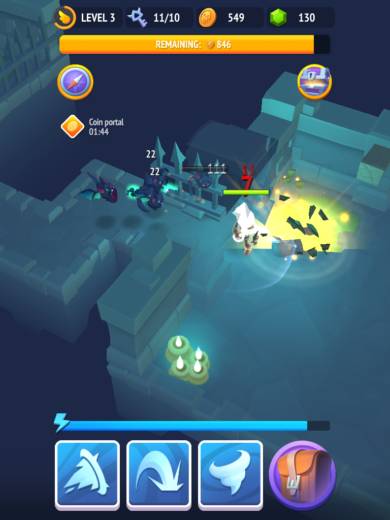 Instead of being on a linear path of identical levels, you’re sent through dungeons where you can explore side areas at your leisure. These side-zones can have different challenges like collecting coins or resources in a limited period of time and it’s interesting to think of the different gameplay types they could throw at me. Some of the boss fights are a bit difficult and you’ll need to use your skills judiciously in order to defeat them - or spend some premium currency. If you’re having troubles in a specific map, you can’t grind. Killing enemies doesn’t give you anything to progress anymore, unlike Nonstop Knight 1, so you won’t get any stronger by mindlessly fighting foes in a dungeon you can manage.