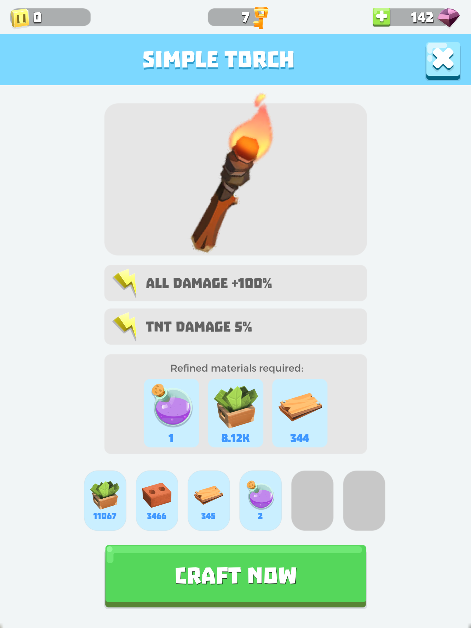 The game starts simple enough, you are presented with blocks that you swipe in order to attack. These blocks give you resources and gold, you use the gold to improve your characters (increasing the damage you deal when you swipe, for instance) and the resources are spent when you reset your game and can be used to craft items to make the next runs easier. Both concepts fail quite quickly. The upgrade curve gets too tough too quickly - you have to deal enough damage to pass certain levels - so you need to grind quite a bit before you can progress and the reset crafting system only allows you to create very specific things. You have no freedom of what you’ll craft so the upgrade path could almost be linear.