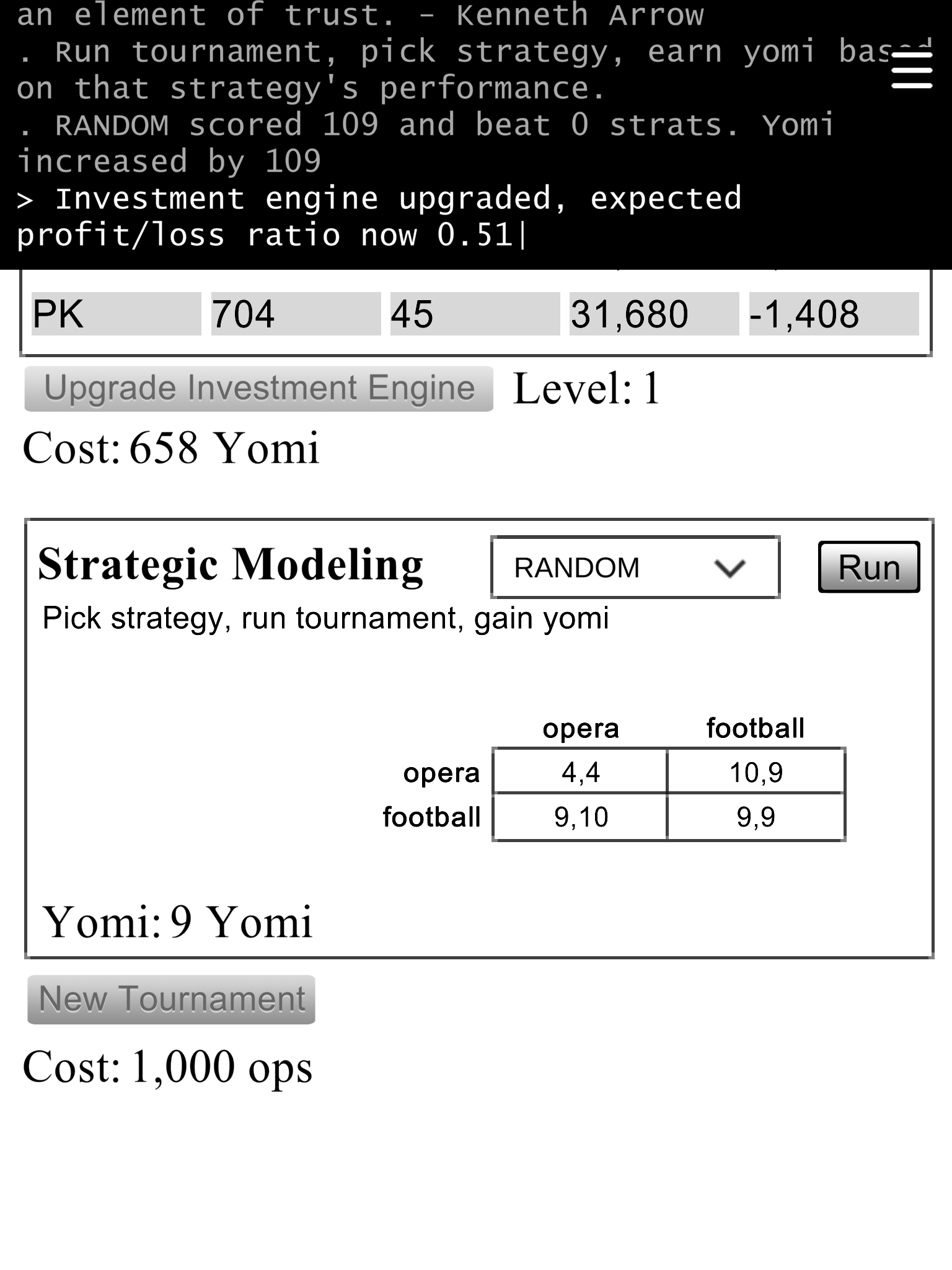 The game starts fairly simply; you click a button and make paperclips and you can control how much they sell for. Changing the price changes the public demand, so you’ll have to find the sweet spot where you consistently sell your paperclips at the maximum price. To make clips, you need wire that you have to buy, and after a while you unlock “auto-clippers” that make paperclips for you. Then you get computing power to research upgrades, investments and strategic modeling to get “yomi”. Everything pools into the same goal: Make more paperclips. You need to money to improve your auto-clippers and you unlock more computing power as you get more paperclips.