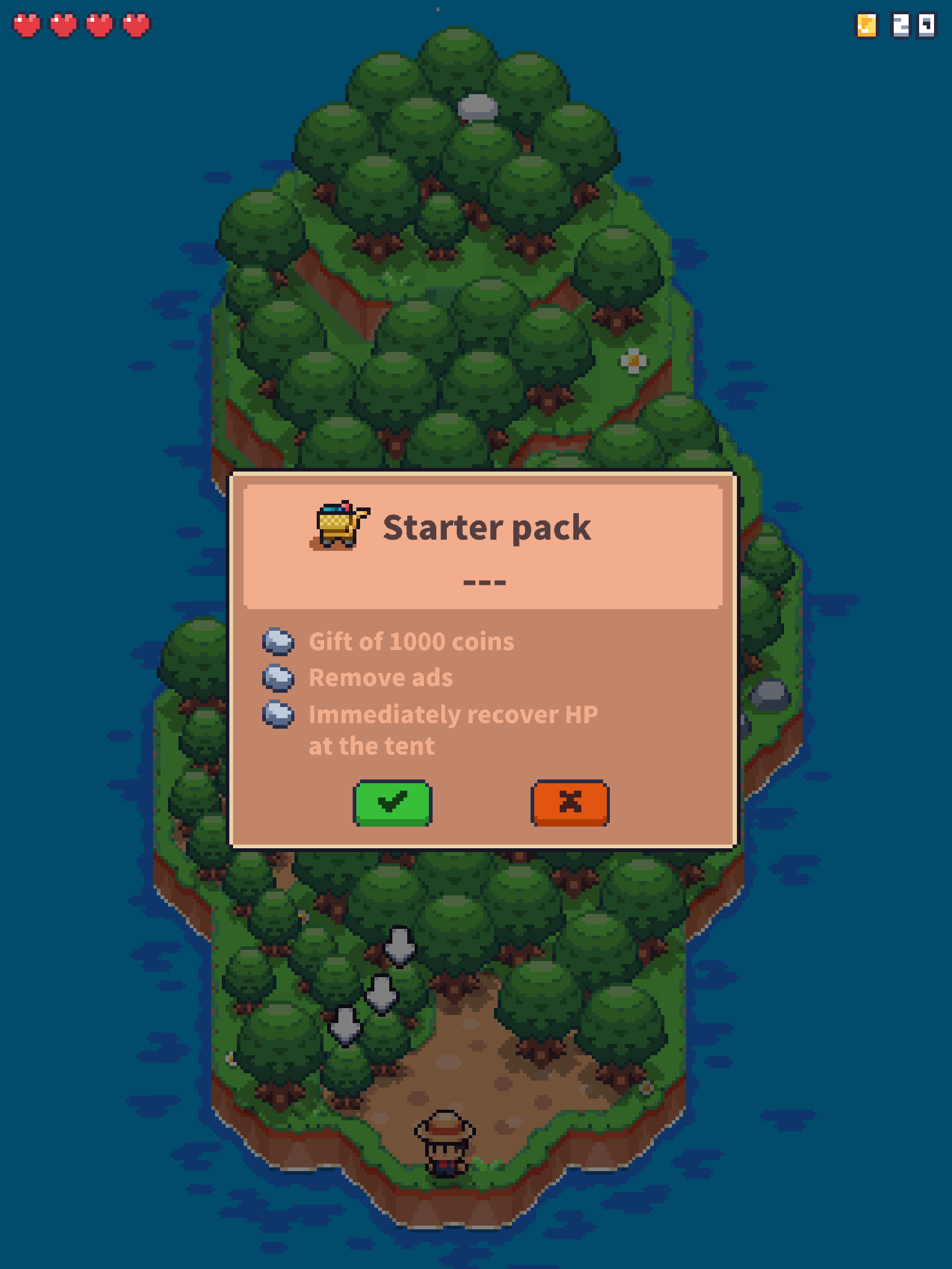 The ultimate problems are that everything you do takes away hearts and every time you sleep to recover hearts, an ad plays, and also that things take too long to respawn. I would’ve gladly thrown a few dollars at this game, but not the 10 it requires to remove ads. Especially combined with the overall pacing of the game, which really feels like it wants you to spend a lot of time doing nothing or waiting. That’s a darned shame.