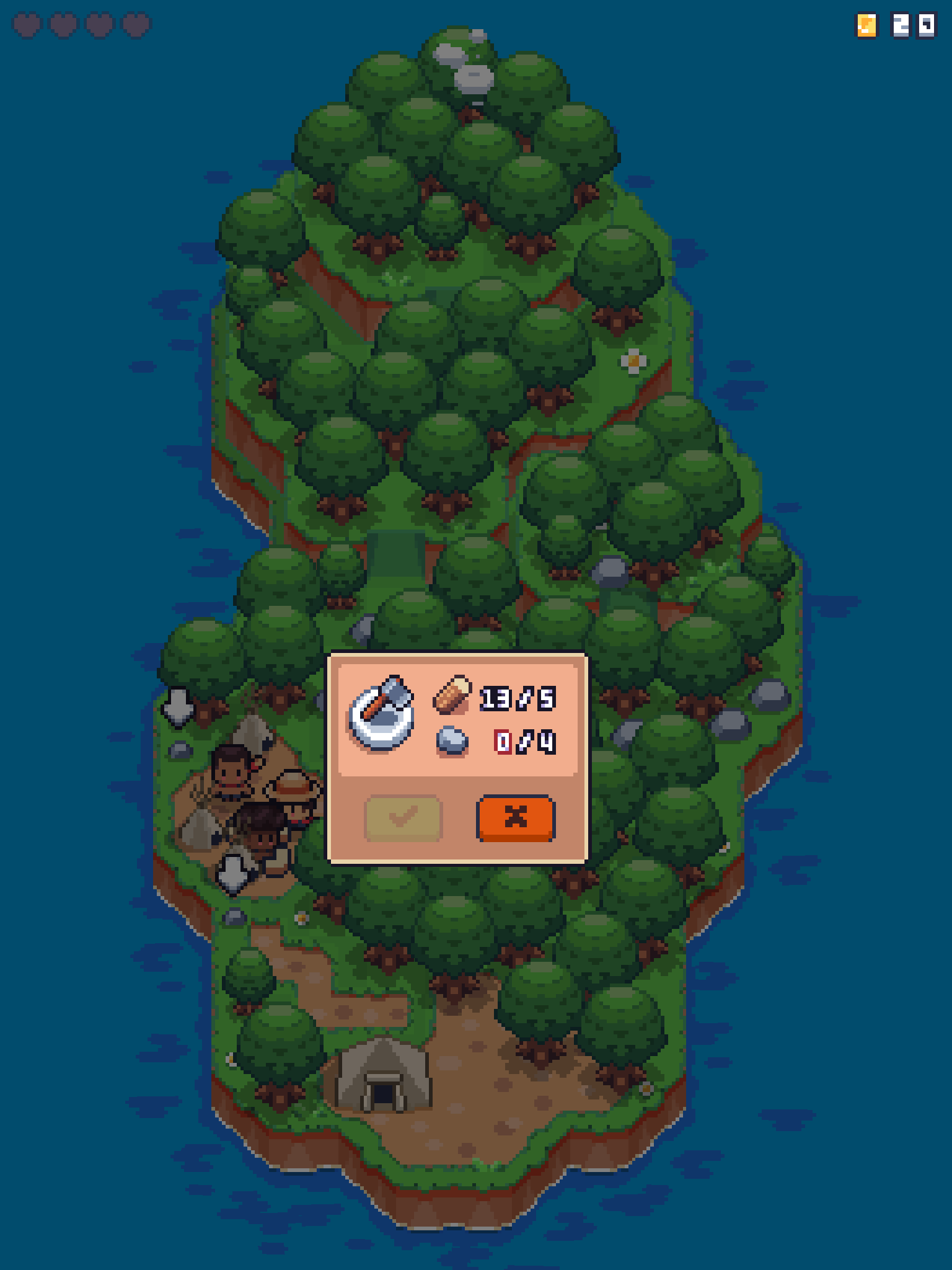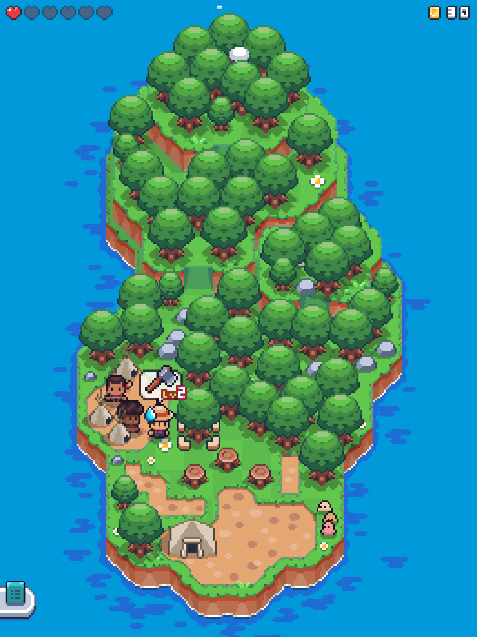 The core loop of the game is simple and manageable enough - you’re on an island and you can tap on things to have your character interact with them. Tapping on a tree - if you have the ax - will cut the tree down and net you lumber. Some items disappear when you interact with them, while other replenish over time. By cutting down specific trees, you open up a path to a mine where you can collect stone, or a clearing where vendors will come and trade resources for gold, and so forth. The story progresses as you explore the island, upgrading your tools by collecting resources in order to unlock more paths - although I would have enjoyed if the higher level trees and rocks had different visuals than the lower level ones - and so forth.