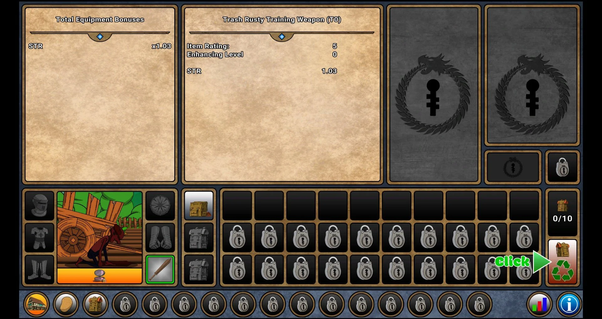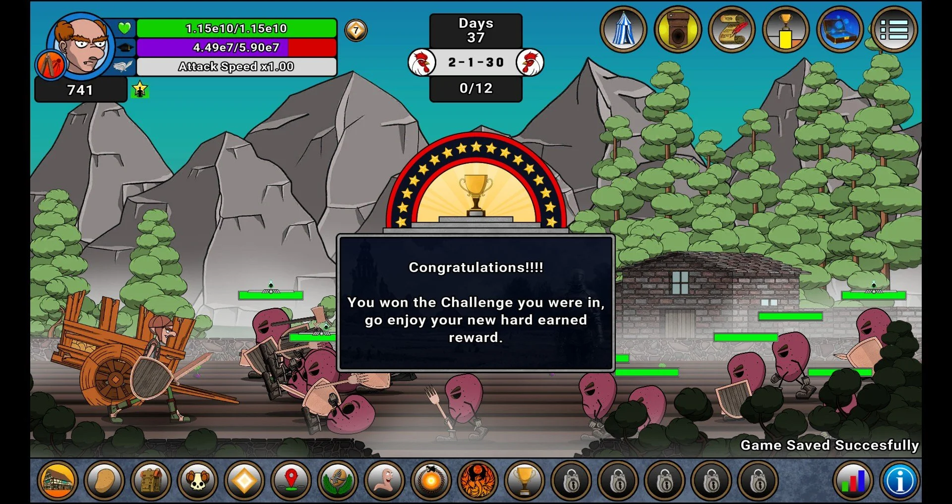There is a “worm breeding” sub-system where you allocate resources to get experience in various stats progressively, and so forth. There is a “milk” sub-system where you get cows that produce milk you can allocate to (you guessed it) improve various stats. Everything does more or less the same thing, but it all feeds into making you stronger. You get pets, you get cards, it takes a long time to unlock all of that but it all improves your main stats and gives you some other neat bonuses here and there. There’s also a mining and town building sub-system that also have their progression tracks and bonuses to other game systems. It’s fun!